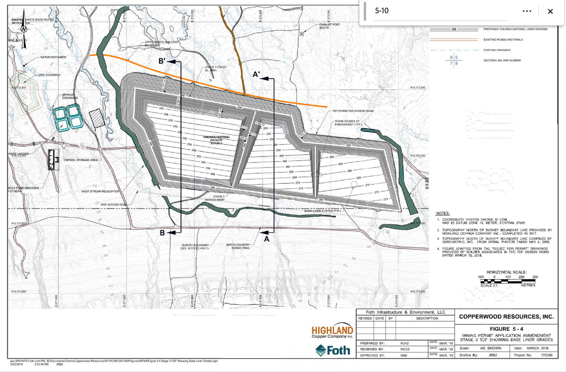 A 2018 regulatory filing shows the three-part construction of the proposed Copperwood tailings disposal facility. Source: Mine Permit Application Amendment, Vol. 1.